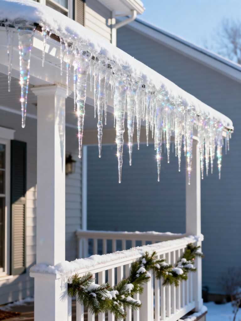 Icicle Garland Hanging from Porch Eaves