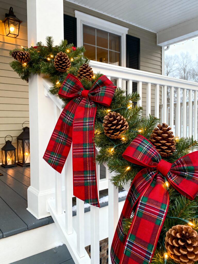 Plaid Ribbon Garland on Porch Railing